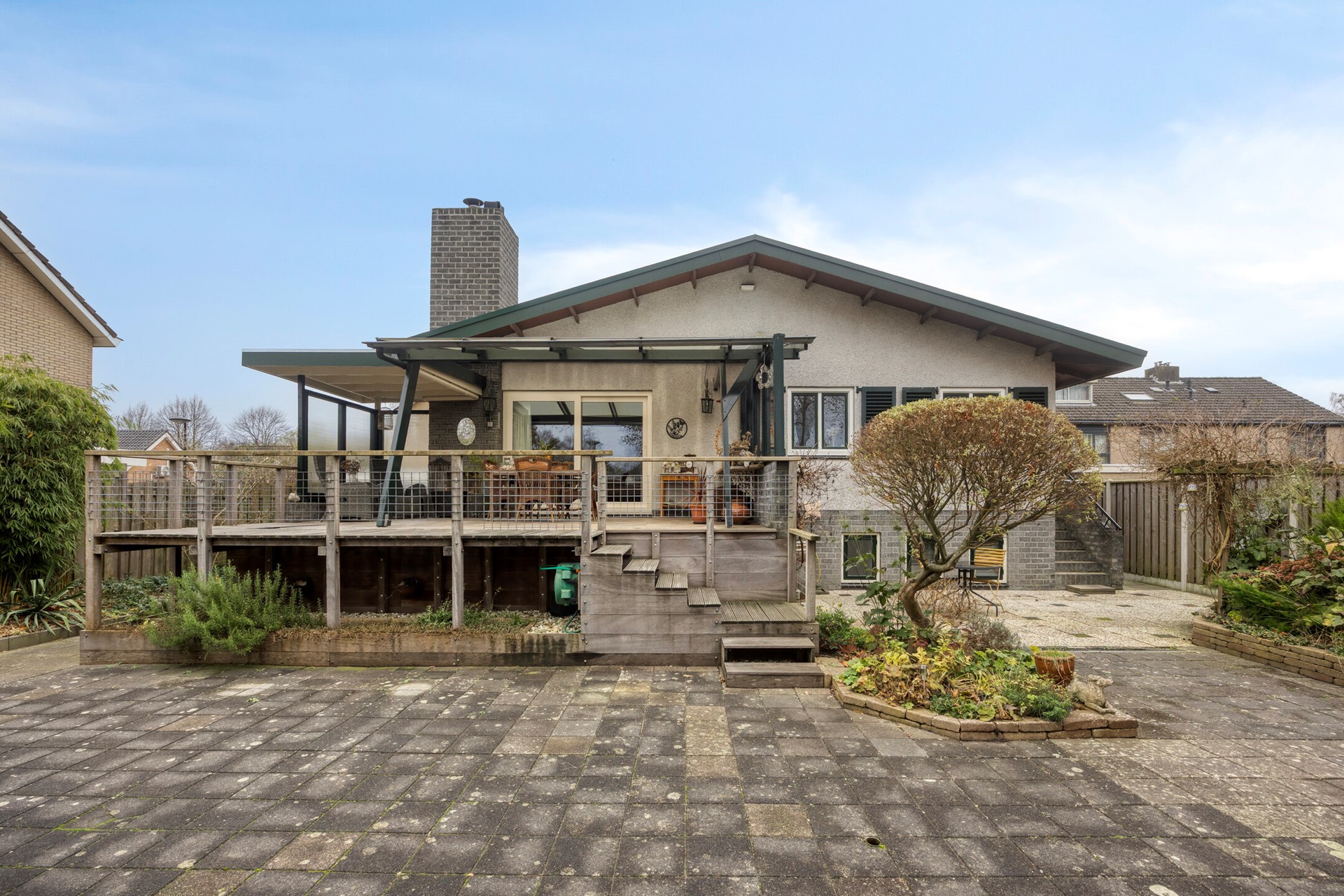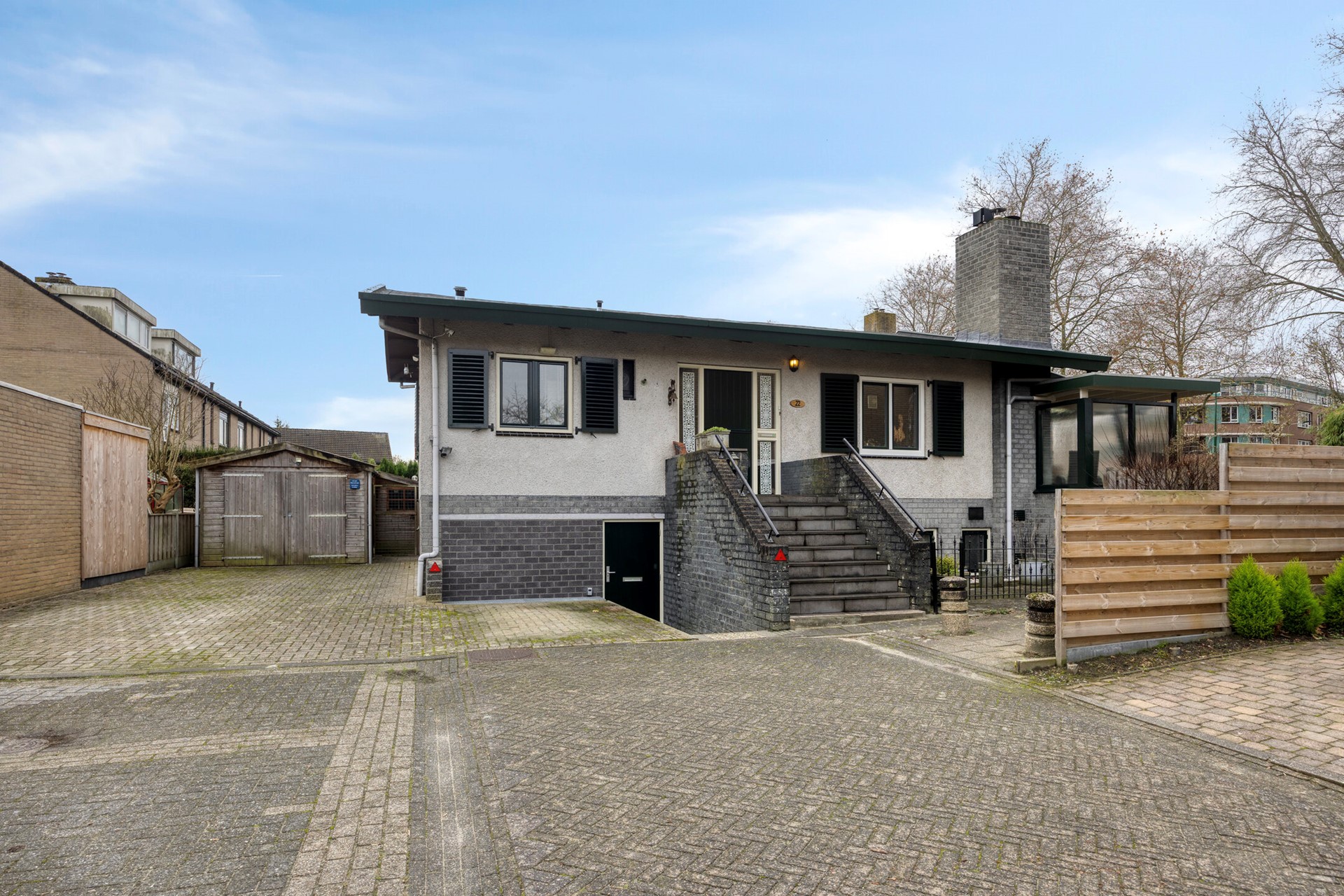 Representatieve en karakteriestieke vrijstaande woning uit 1978 met souterrain, hooggelegen terras en diverse bijgebouwen!