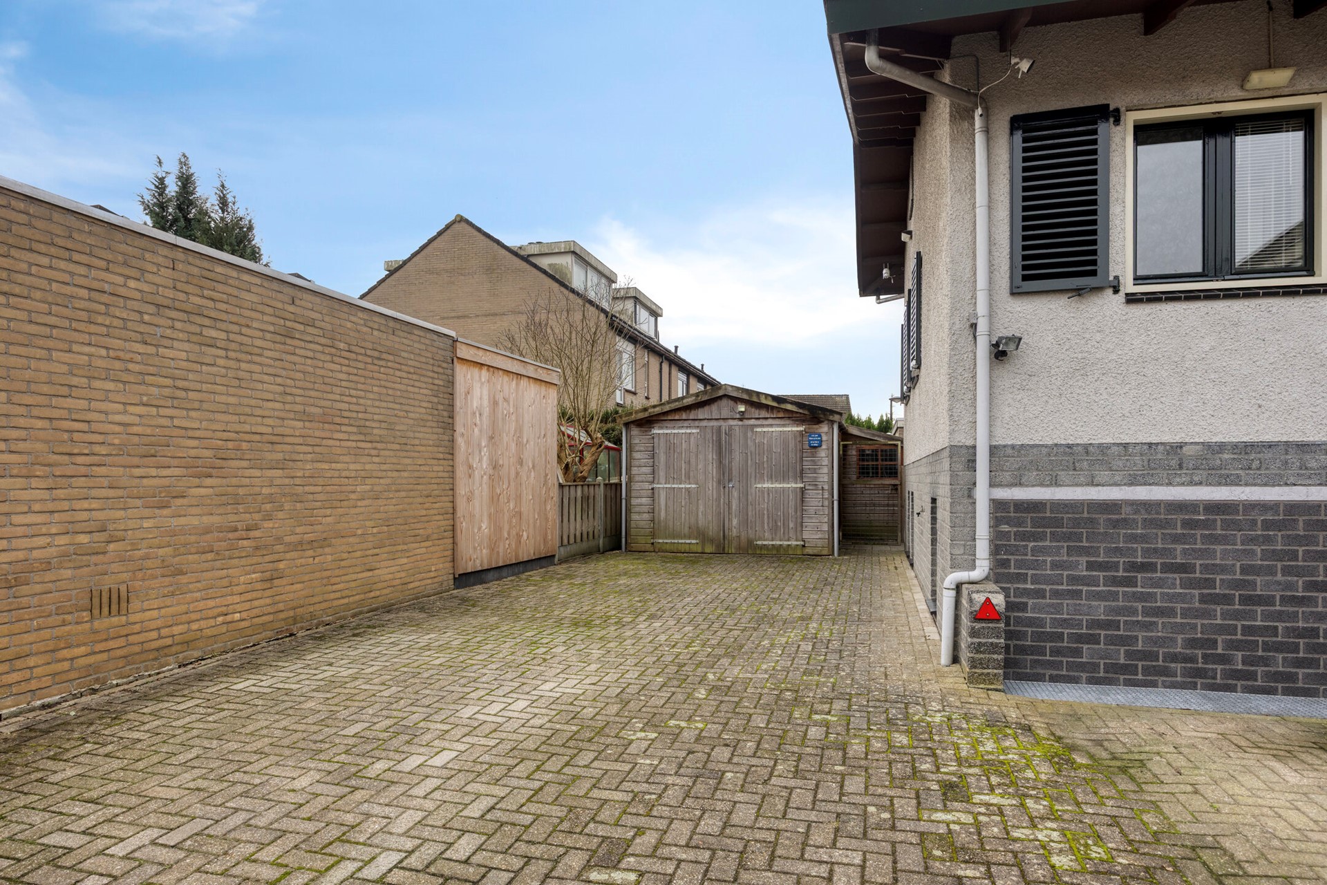 Op het perceel bevinden zich een houten tuinhuis en een vrijstaande houten garage met openslaande deuren naar de oprit. Hierdoor is er ruime parkeergelegenheid en opslagcapaciteit aanwezig, wat dit object bijzonder veelzijdig maakt.