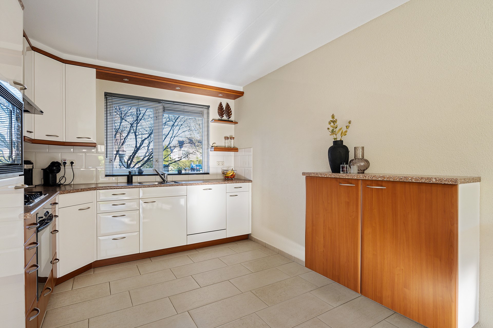 Binnen is de woning luxe afgewerkt en heeft een warme lichte uitstraling. Deze lichte uitstraling wordt verstrekt door de mooie grote raampartijen. De keuken is voorzien van diverse inbouwapparatuur, waaronder een 5 pits kookplaat met afzuigkap, hetelucht-oven, combi-magnetron, koelkast en een vaatwasser. Tevens veel opbergruimte.
