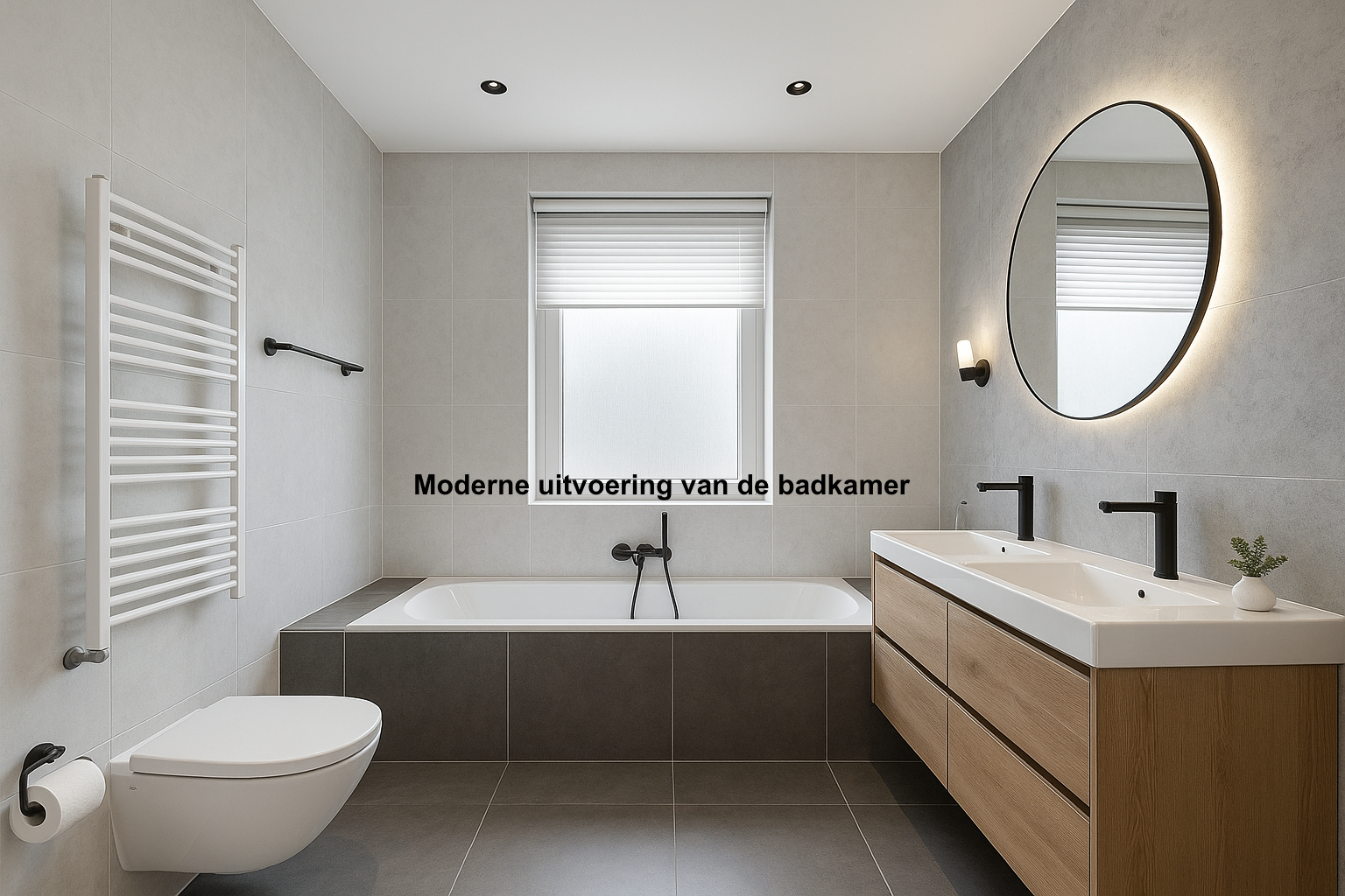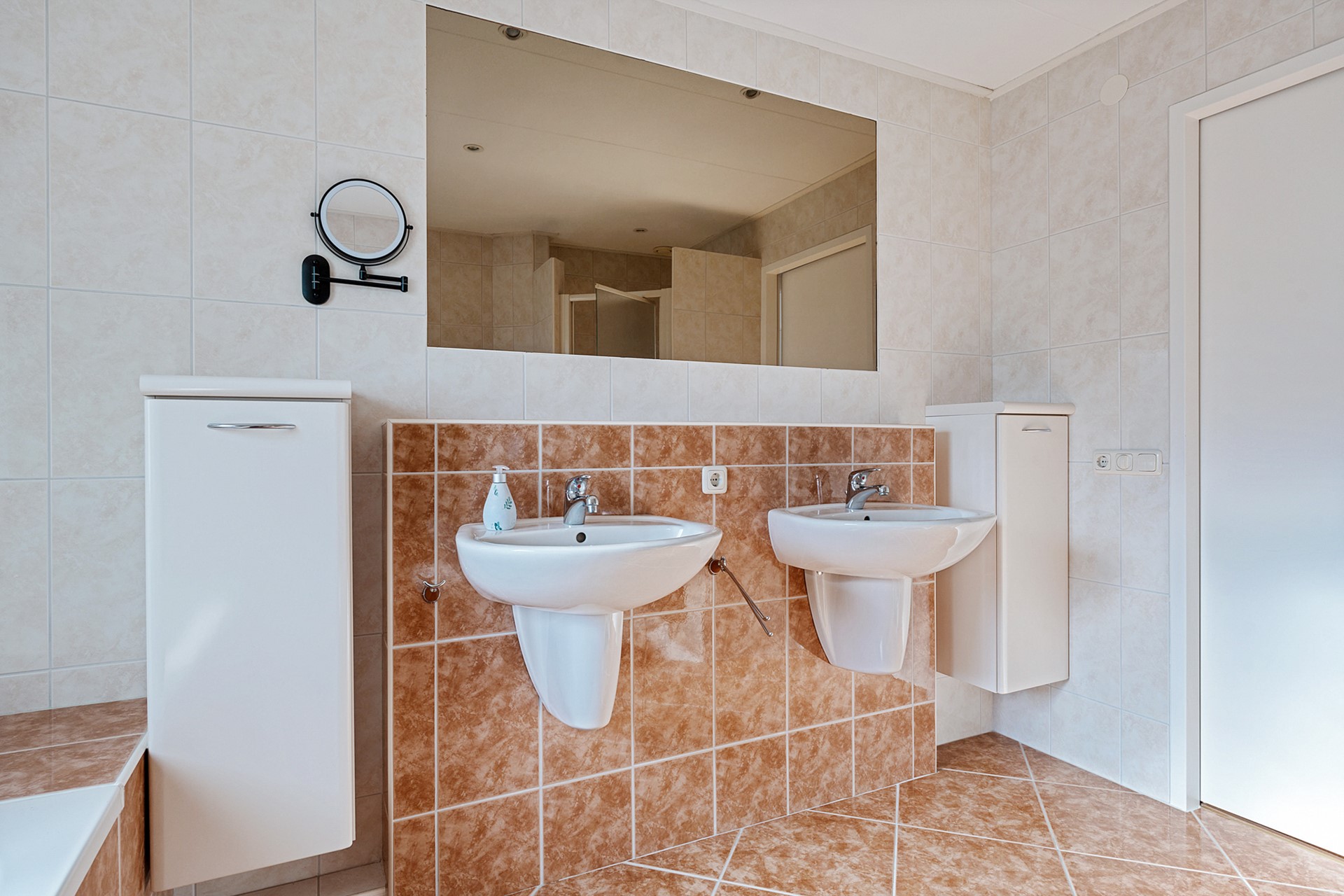 • Badkamer met dubbele wastafel, ligbad, hang closet en douchehoek